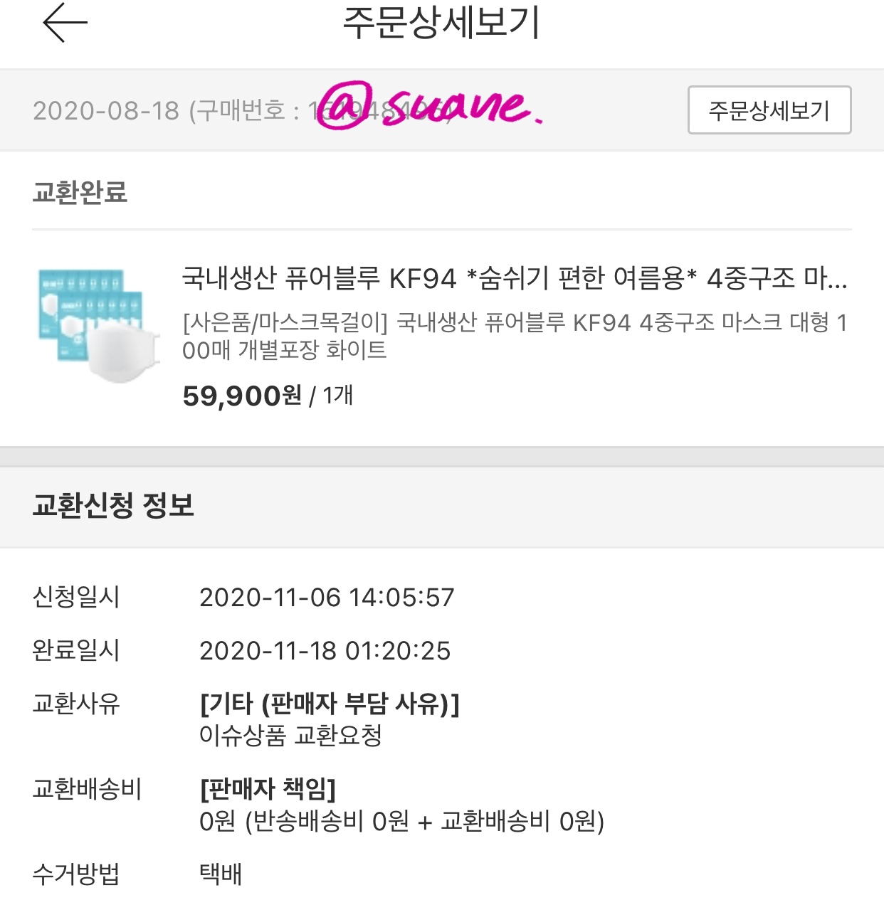 총 100개 모두 새제품으로 교환했고, 원래 가지고 있던 가짜 마스크는 전부 회수해갔습니다.